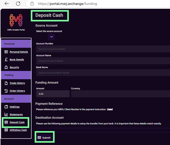 - Follow the provided bank transfer instructions making sure to reference your MERJ ID in your payment instruction